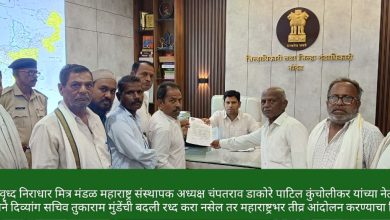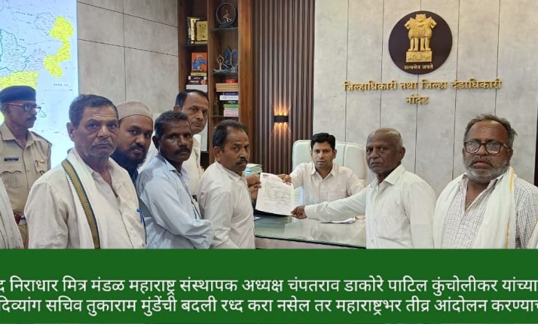 दिव्यांगास न्याय हक्क देता येत नसेल तर स्वईच्छा मरण्याची परवानगीसाठी धरने आंदोलनाचा निवेदनाद्वारे चंपतराव डाकोरे पाटिल यांनी दिला इशारा