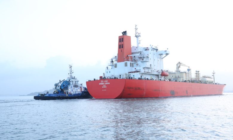 ‘ग्रीन आशा’ यशस्वी रित्या जेएनपीएत दाखल सुमारे १५ हजार टन एलपीजीची आयात.