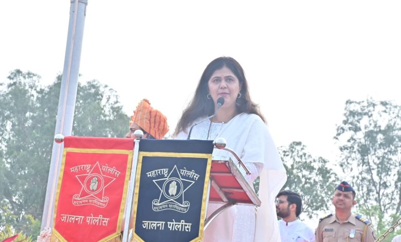भारताच्या 77 व्या प्रजासत्ताक दिनानिमित्त येथील पोलीस मुख्यालय मैदानावर मुख्य शासकीय ध्वजारोहण पालकमंत्री पकंजा गोपीनाथ मुंडे यांच्या हस्ते आज झाले त्याप्रसंगी त्या बोलत होत्या.