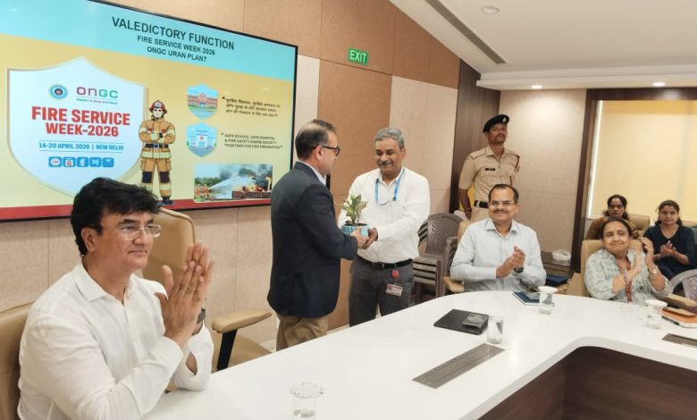 दिनांक २०.०४.२०२६ रोजी दुपारी ३ वाजता ओएनजीसी उरण, द्रोणागिरी बिल्डिंग येथील कॉन्फरन्स हॉलमध्ये अग्निशमन सेवा सप्ताहाचा समारोप सोहळा आयोजित करण्यात आला होता. जीजीएम/प्लांट मॅनेजर एस. एन. अहमद यांनी प्रमुख पाहुणे म्हणून या सोहळ्याची शोभा वाढवली. यावेळी सीजीएम (सपोर्ट मॅनेजर) संजीव मोहन, सीजीएम (एचएसई) शरद सोनकर, सीजीएम (पी) श्रीमती अर्चना श्रीवास्तव, सीजीएम (पी) एच. एस. साहू, जीएम, ओएनजीसी फायर सर्व्हिस, सीआयएसएफ युनिट ओएनजीसी मुंबईचे उप कमांडंट/फायर लोकेश चंद यांच्यासह इतर प्लांट अधिकारी, सीआयएसएफ कर्मचारी आणि त्यांचे कुटुंबीय उपस्थित होते.कार्यक्रमाची सुरुवात ओएनजीसीच्या गीताने झाली, त्यानंतर अग्निशमन सेवा सप्ताहादरम्यान आयोजित केलेल्या विविध कार्यक्रमांवर प्रकाश टाकणारे पॉवरपॉइंट सादरीकरण करण्यात आले.यामध्ये उद्घाटन सोहळा, शाळा, रुग्णालये, सीआयएसएफ कॉलनी आणि जवळच्या गावांमध्ये आयोजित अग्निसुरक्षा प्रशिक्षण सत्रे, तसेच ओएनजीसी कर्मचारी, सीआयएसएफ कर्मचारी आणि शालेय विद्यार्थ्यांसाठी आयोजित केलेल्या विविध स्पर्धांचा समावेश होता. स्पर्धांच्या विजेत्यांना पारितोषिके वितरित करण्यात आली. प्रमुख पाहुण्यांनी उपस्थितांना संबोधित केले आणि अग्निसुरक्षा जागृतीला प्रोत्साहन देण्यासाठी केलेल्या प्रयत्नांचे कौतुक केले. ओएनजीसी उरण प्लांटच्या वरिष्ठ अग्निशमन अधिकारी श्रीमती श्वेता आर. जी. यांनी केलेल्या आभार प्रदर्शनाने कार्यक्रमाची सांगता झाली.