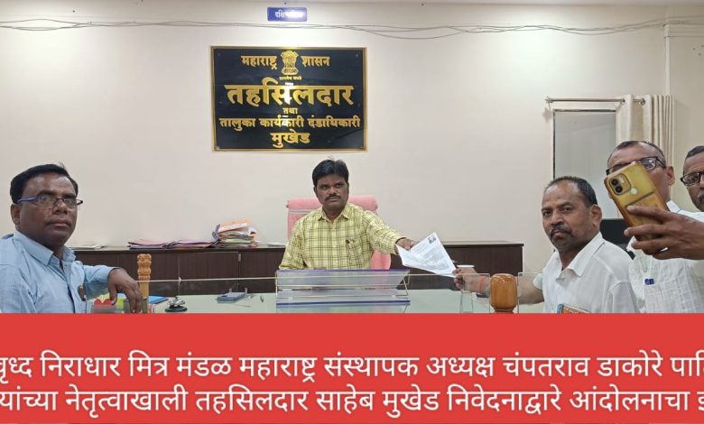 असे निवेदन दिव्यांग वृध्द निराधार मित्र मंडळ महाराष्ट्र संस्थापक अध्यक्ष चंपतराव डाकोरे पाटिल कुंचोलीकर यांच्या नेतृत्वाखाली, मुखेड, हदगाव,ऊमरी किनवट तालुक्यात देण्यात आले अनेक तालुक्यांमध्ये देण्यात येणार आहे.