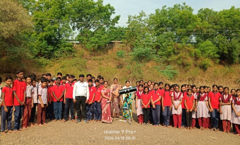 कै.बाबुराव जाफ्राबादकर माध्यमिक विद्यालय जालना येथे “अस्ट्रोफाईल्स”यांच्या सहकार्याने ‘सूर्य दर्शन कार्यशाळा’ आयोजित करण्यात आली. या कार्यशाळेत विविध इयत्तांतील विद्यार्थ्यांनी सोलर फिल्टरचा वापर करून दुर्बिणीतून सूर्याचे निरीक्षण केले आणि सनस्पॉट्स तसेच सूर्याविषयीचे वैज्ञानिक ज्ञान आत्मसात केले. आजच्या काळात पारंपरिक शिक्षणातून अनुभवाधारित शिक्षणाकडे होत असलेल्या बदलाच्या पार्श्वभूमीवर अशा उपक्रमांची नितांत गरज आहे. विद्यार्थ्यांना पृथ्वीवरील ऋतू हे पृथ्वीच्या अक्षाच्या झुकावावर अवलंबून असतात, तसेच सध्या उन्हाळ्याचे दिवस असल्याने पृथ्वीवर दिवस हा रात्रीपेक्षा मोठा असतो, हे समजले. सहकार्य केल्याबद्दल सर्वांचे मनःपूर्वक आभार. तसेच शाळेच्या मुख्याध्यापिका मुख्याध्यापिका श्रीमती.मीनाक्षी कुलकर्णी यांनी अमन सिंह सर मित पांचाळ सर,अभिषेक पांचाळ सर या मुंबईहून आलेल्या टीमचे स्वागत केले. यावेळी संदीप इंगोले, मदन सोजे, भीमाशंकर जवळेकर, राजाराम साबळे, प्रगती भालेकर, अलकनंदा गाडेकर, वंदना नन्नवरे, शिक्षक व शिक्षकेतर कर्मचारी उपस्थित होते.